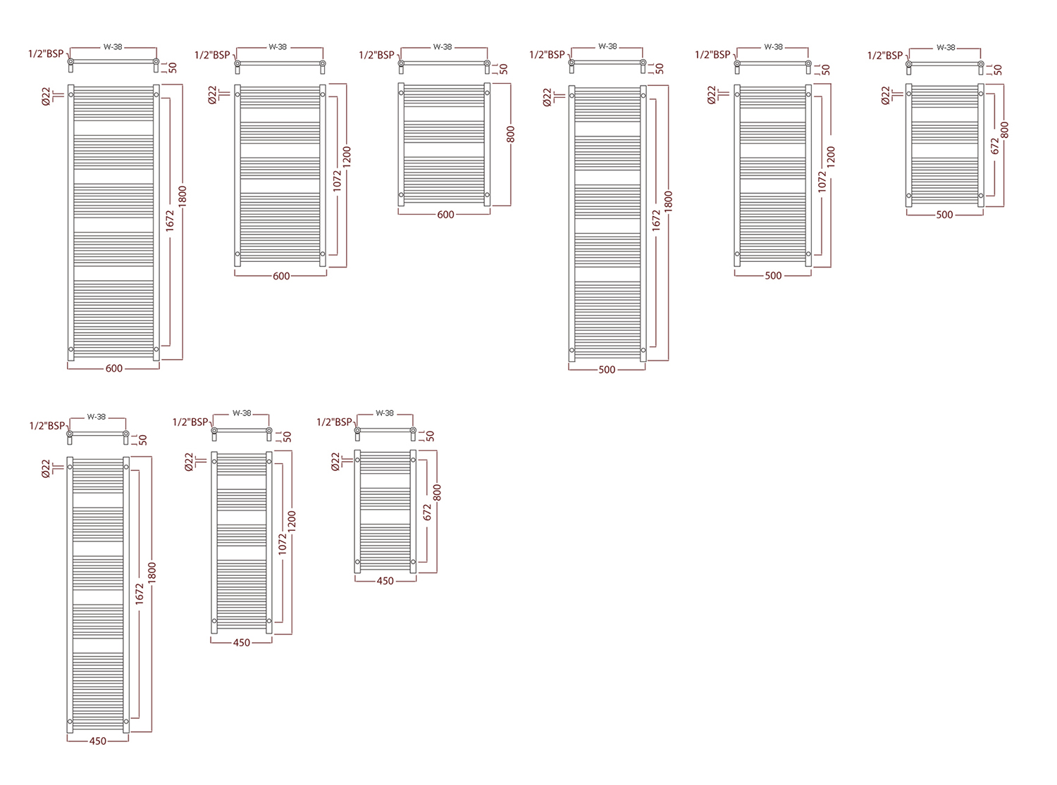 Widths: 450mm wide, 500mm wide, 600mm wide